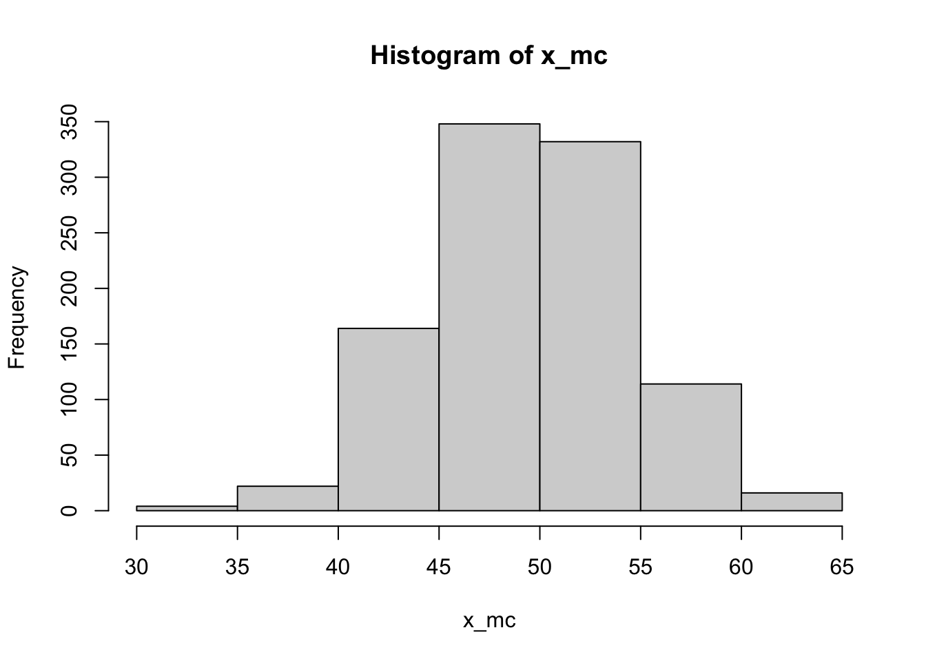 x_mc = rbinom(n = n_exp, size = 100, prob = 0.5)
